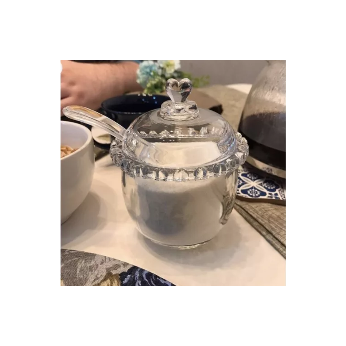 Açucareiro de Cristal com Colher Coração 9,5 x 9,5 x 12 cm – Lyor