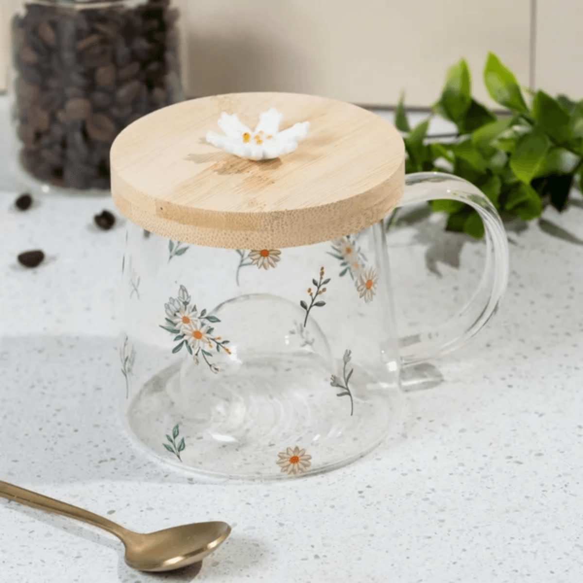 Caneca de Vidro Borossilicato com Pires de Bambu Daisy – Lyor