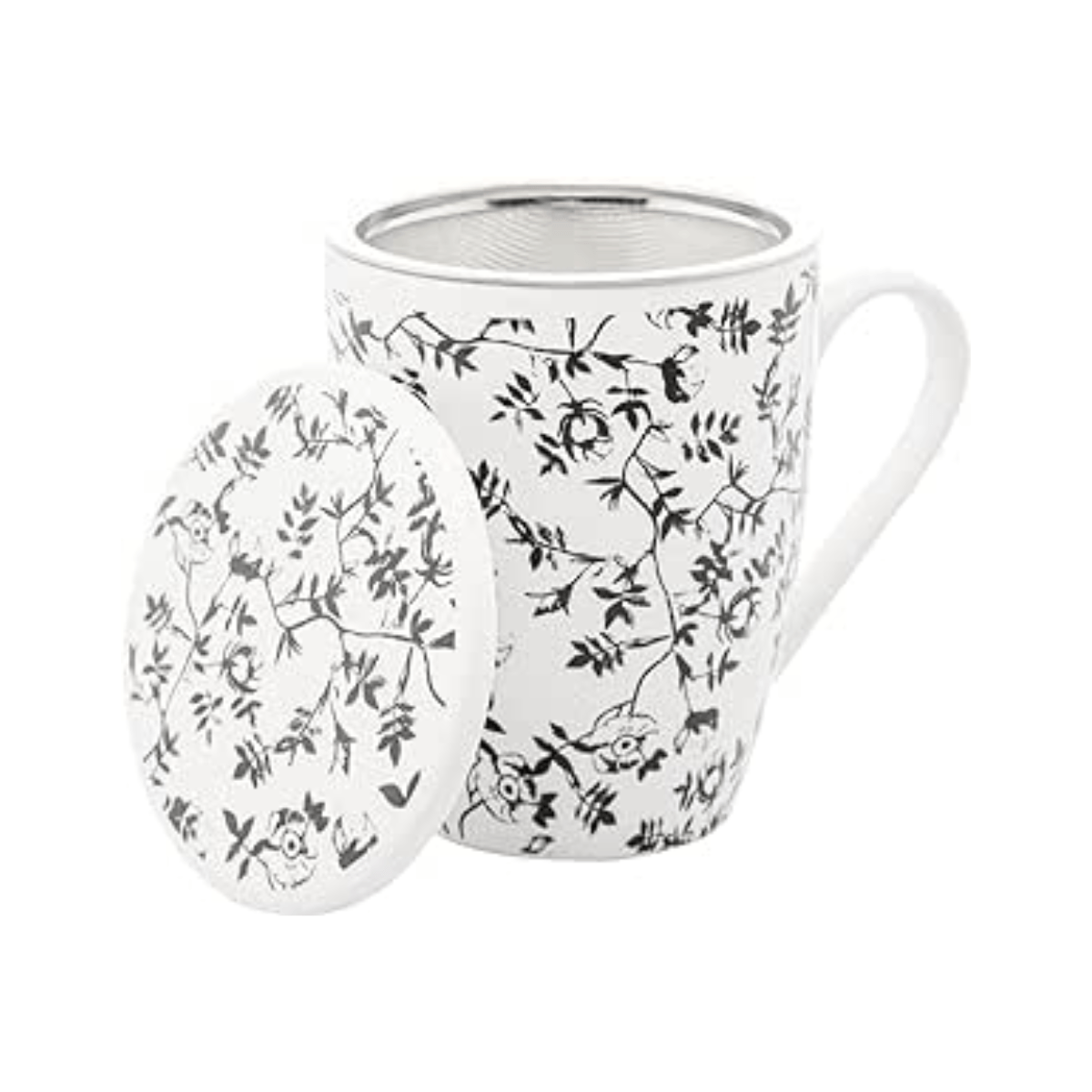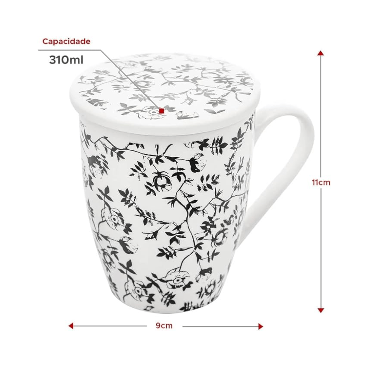 Caneca Porcelana C/Tampa e Filtro Super White Tiny Flower 310ml – Lyor