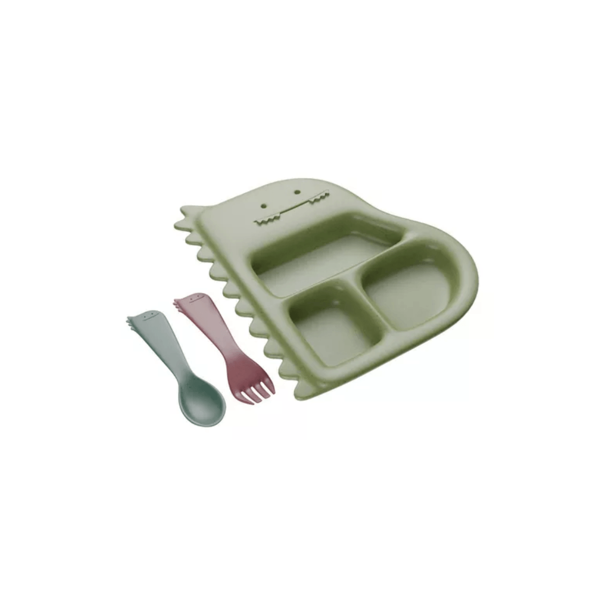 Conjunto de Prato com 2 Talheres de Bambu e PP Baby Dino Verde – Lyor