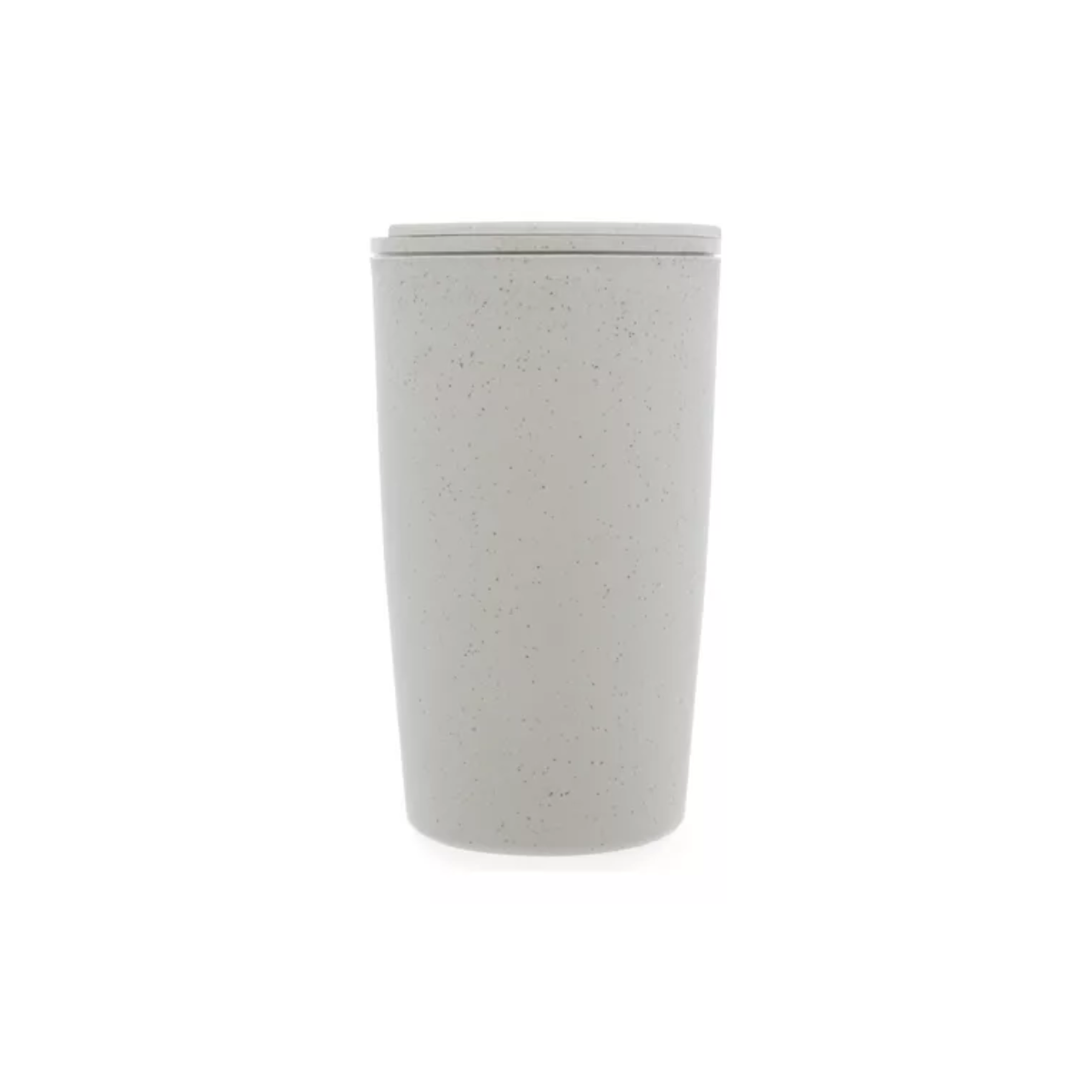 Copo de Bambu e PP com Parede Dupla e Tampa Branco 500ml – Lyor
