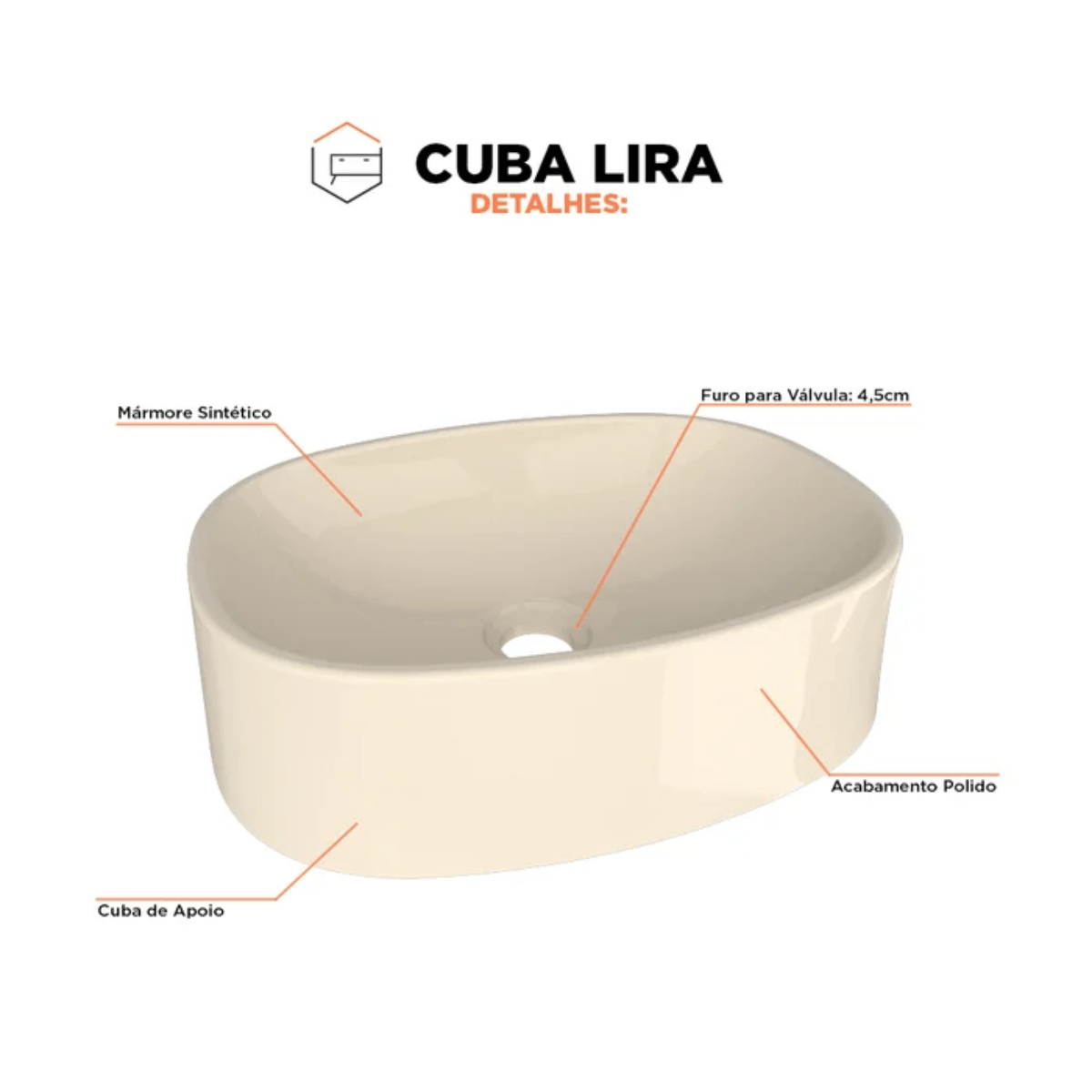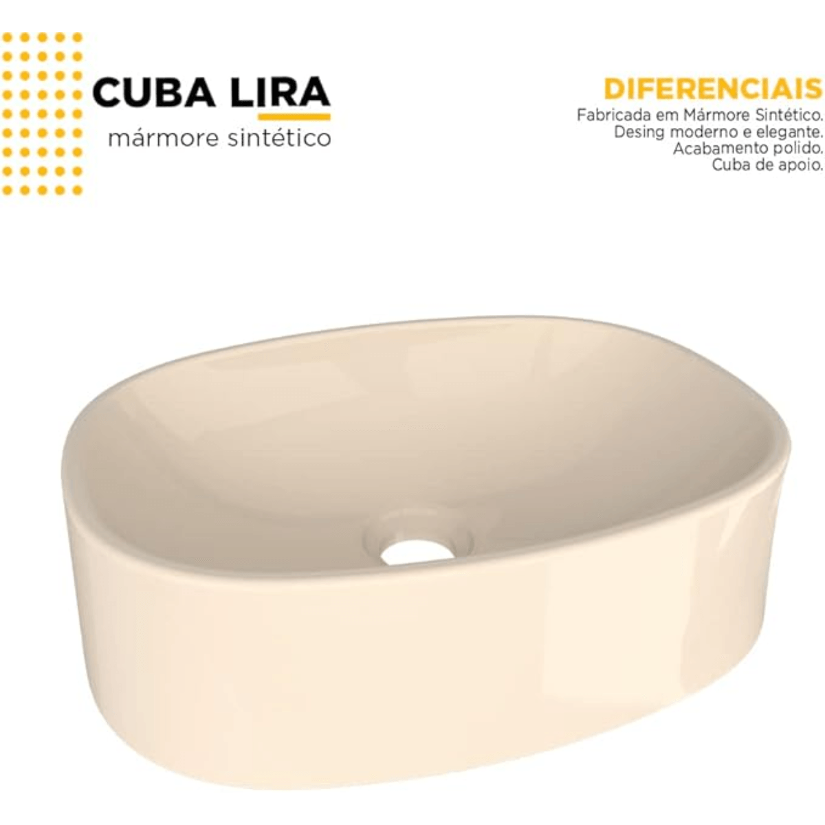 Cuba para Banheiro de Apoio Lira Areia – Mármore Sintético | Cozimax