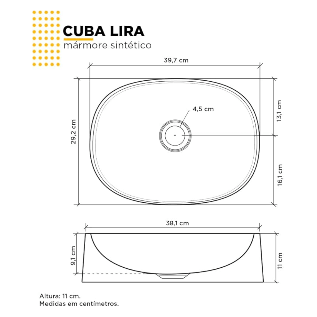 • Modelo: Lira, cuba de apoio com design moderno e sofisticado.