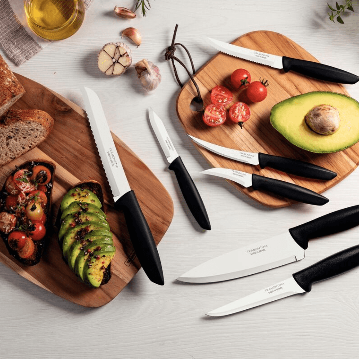 Utilize tábuas de polipropileno ou madeira Tramontina para preservar o fio das lâminas.