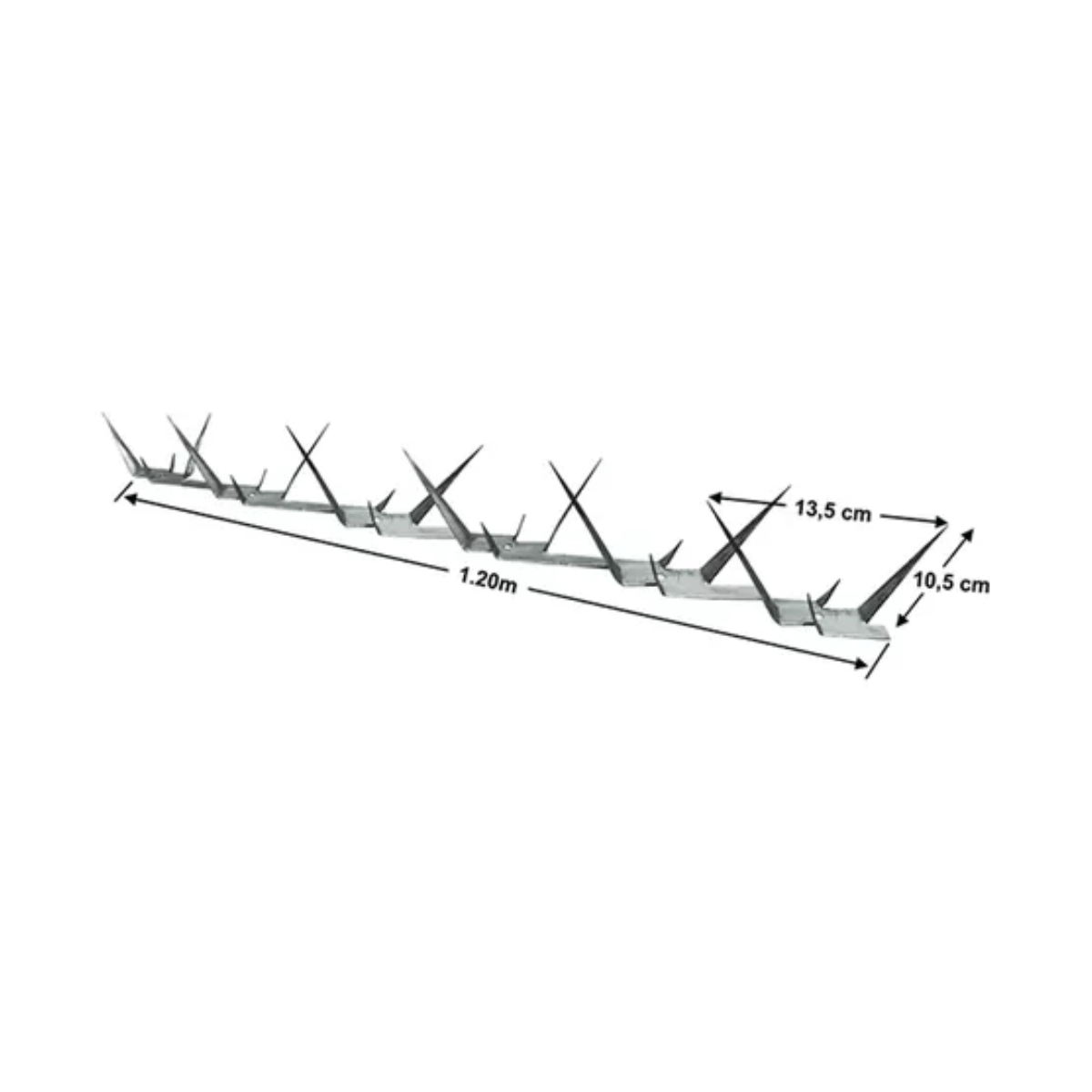O Kit Garra Calhaforte é composto por 5 peças de 1,20 metros, totalizando 6 metros de proteção para muros. Fabricado em aço galvanizado com pontas altamente perfurantes, oferece excelente resistência e durabilidade contra ações do tempo. Ideal para proteção periférica de residências, comércios e indústrias, o kit substitui facilmente os antigos cacos de vidro, sendo também fácil de instalar tanto na vertical quanto sobre portões.