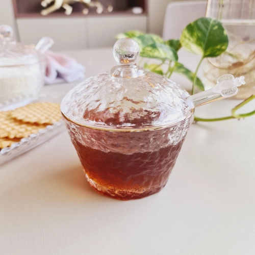 Meleira de Cristal Martelado com Colher e Tampa com Fio de Ouro Petra – Lyor