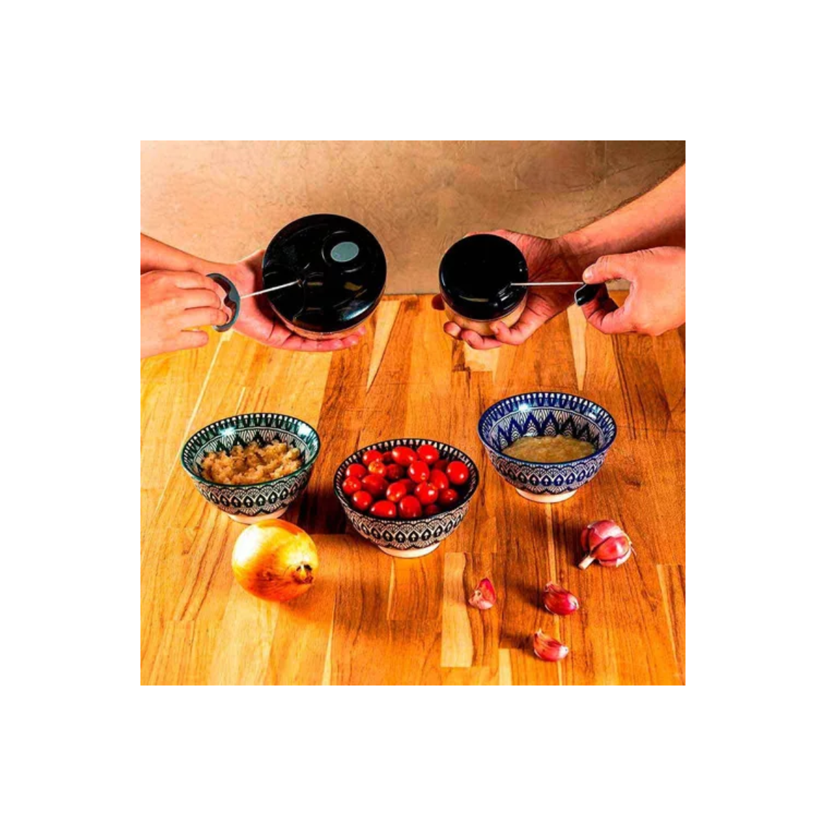 Praticidade: Tritura e corta alimentos rapidamente com movimentos manuais simples.