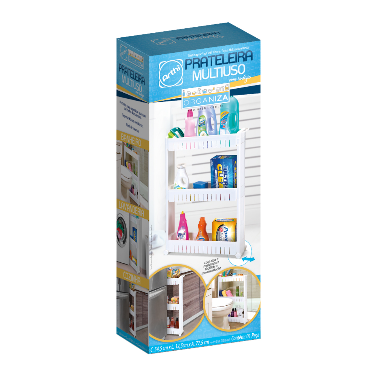 Organize sua casa ou escritório com facilidade e praticidade! O Organizador Multiúso com Rodízios da Arthi é a solução perfeita para armazenar diversos itens e otimizar o espaço. Seu design funcional e compacto permite o uso em diferentes ambientes, como cozinha, banheiro, lavanderia ou escritório.