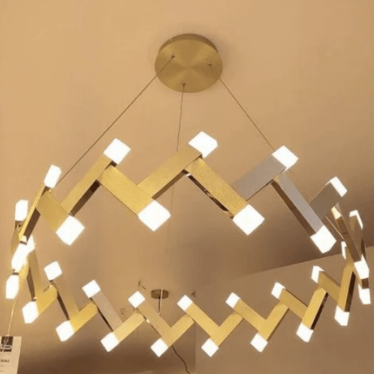 Possui as dimensões de: cm de comprimento, 19,8cm de altura, e 82,5 de diâmetro. O pendente sarau possui um peso total de 5,5kg, podendo consumir até 44,8W de potência.