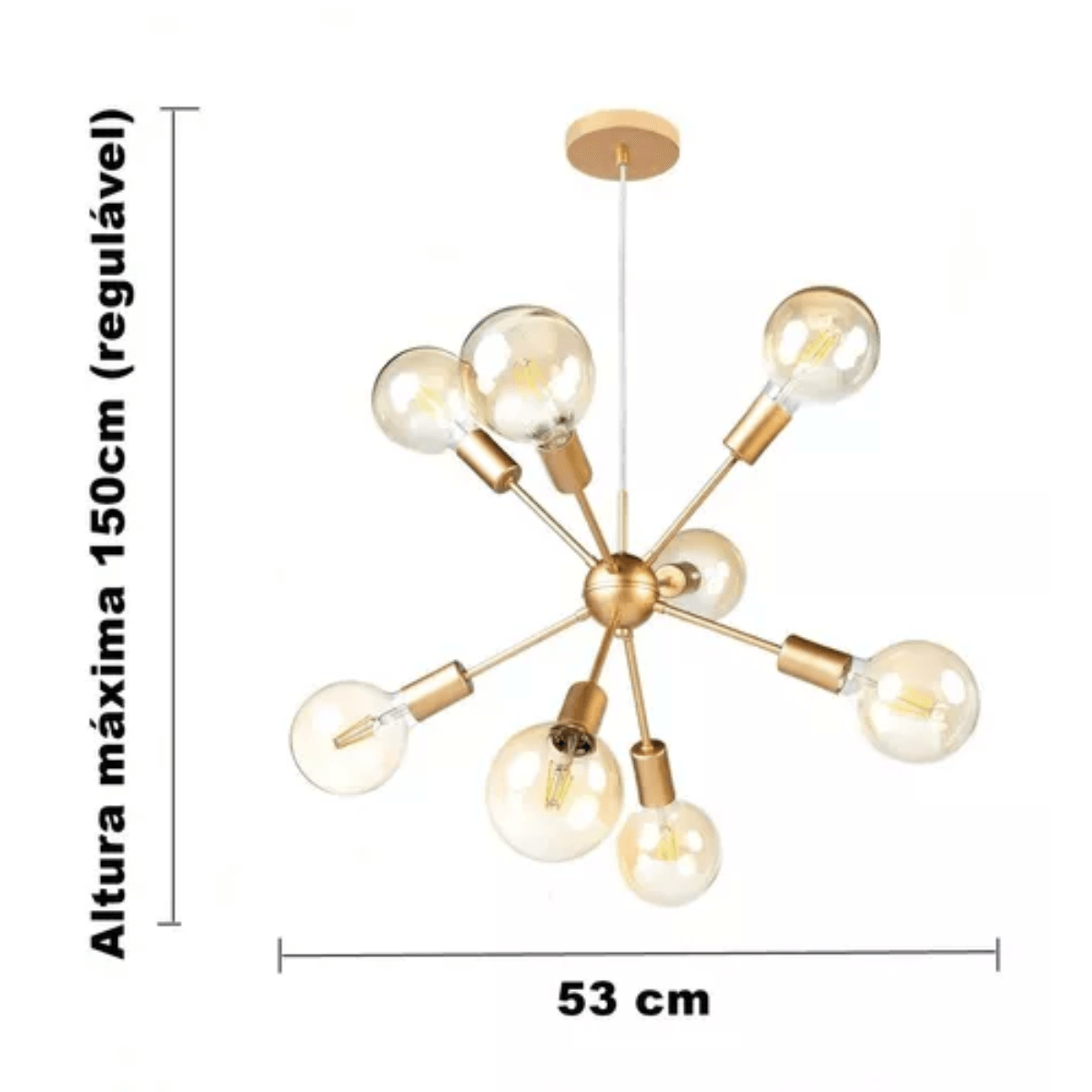 Lustre Pendente Sputnik Dourado 8 Lâmpadas Bronzearte