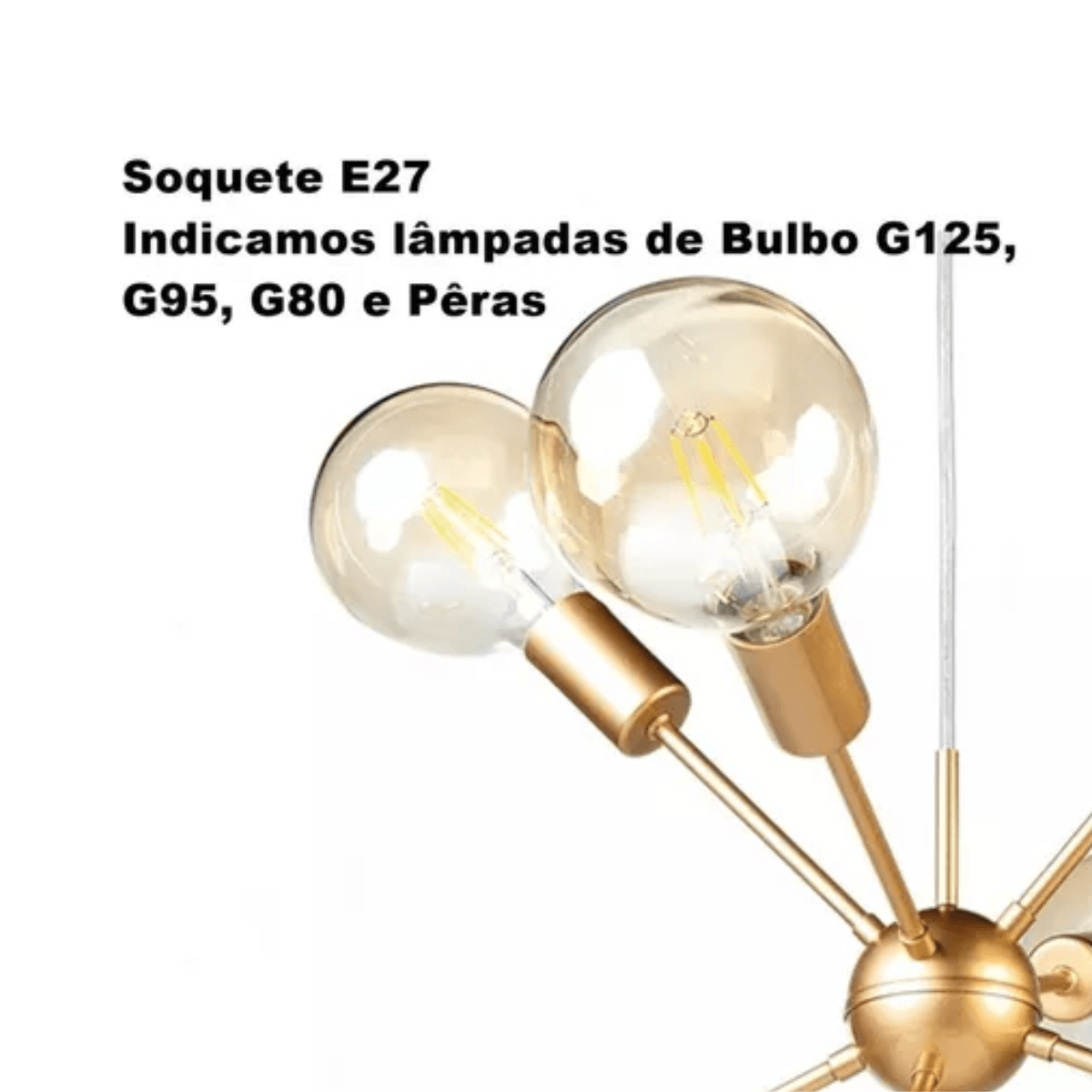 – Lâmpadas a serem usadas: Soquete E27 – Indicamos a de Bulbo G125, G95, G80 ou Pêra.