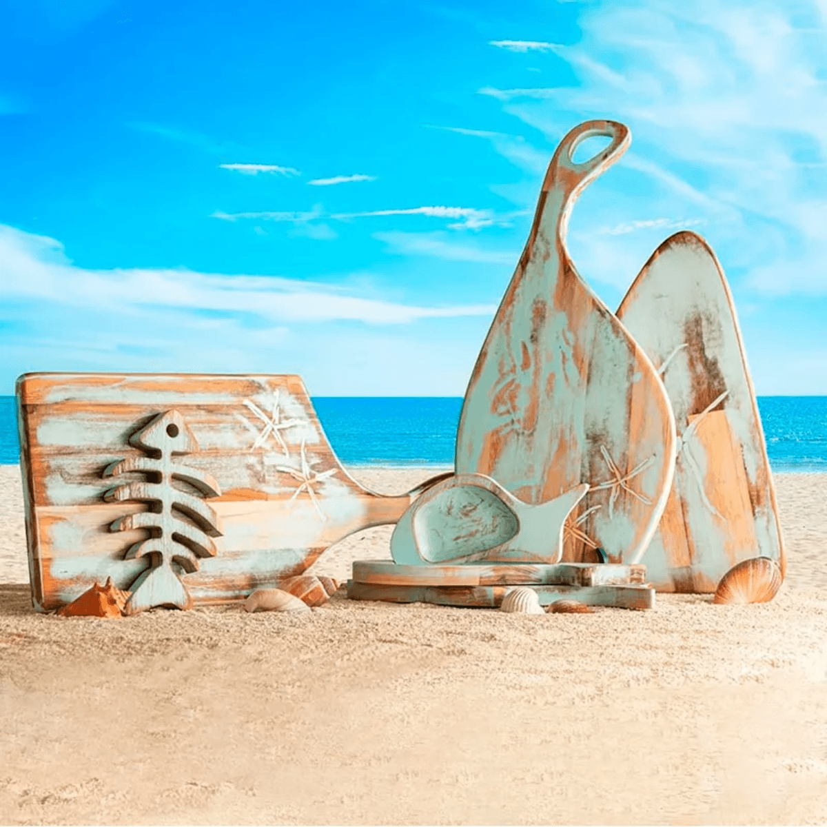 Encante seus convidados e eleve a apresentação de seus petiscos com a Petisqueira de Madeira Teca Noronha Azul da Wolff Craft.