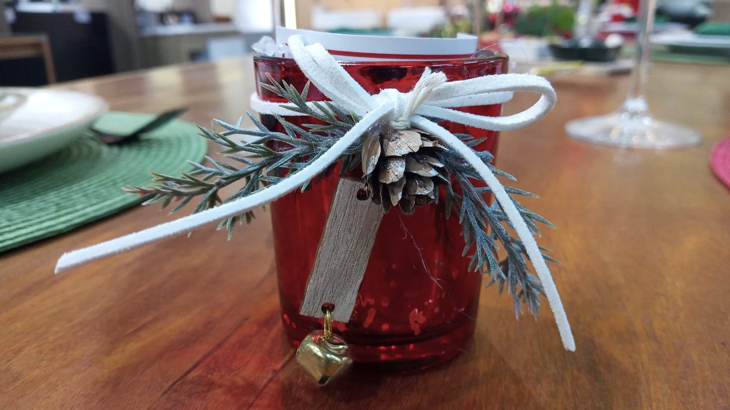 Ideal para a decoração de fim de ano, o arranjo traz elementos tradicionais que evocam o espírito do Natal, mas também pode ser utilizado em outras ocasiões especiais.