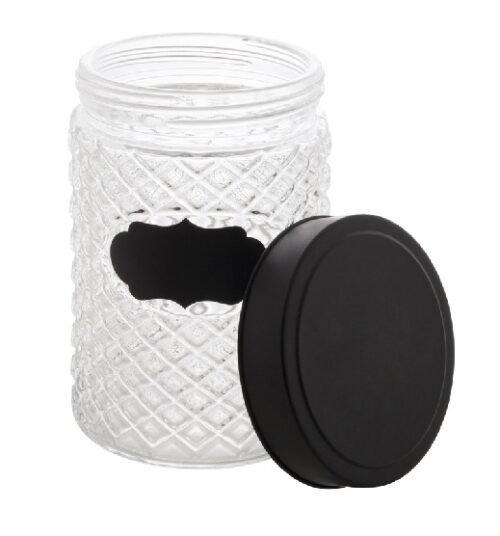 Pote de Vidro com Tampa Preta Label 11cm x 17cm – Wolff