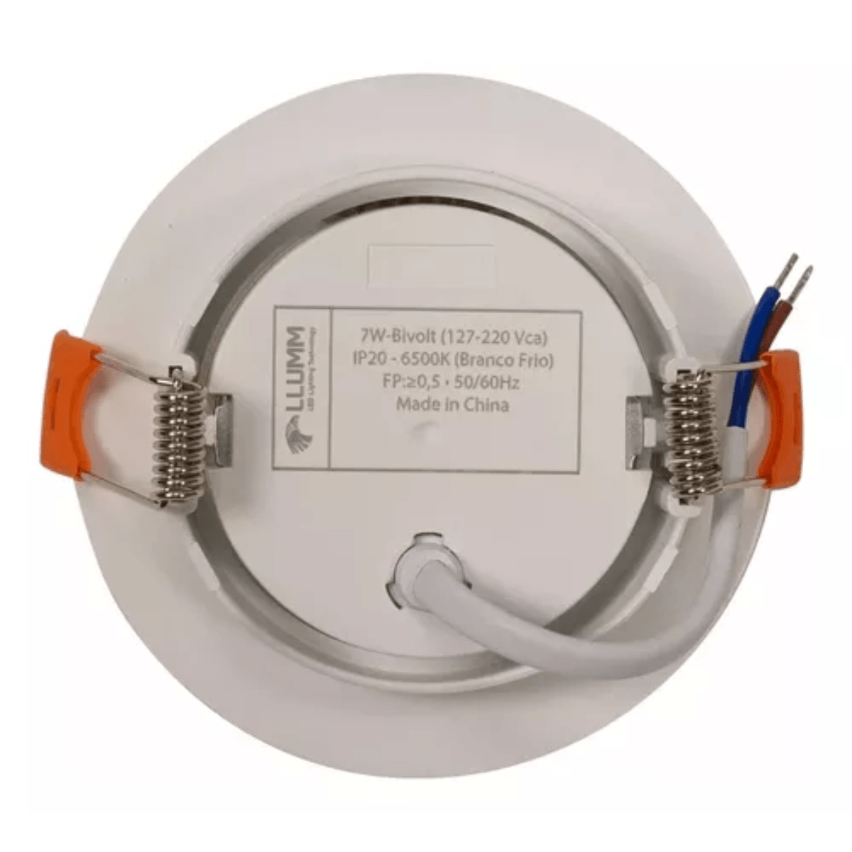 Potência: 7W/ Bivolt (127/220V)/ Temperatura de cor: 6500K (Branco frio)/ Fluxo luminoso: 630lm/ Ângulo de abertura: 35/ Vida útil aproximada: 25.000h