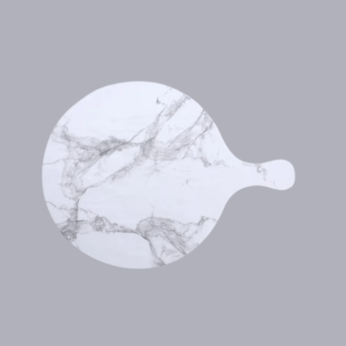 Tábua Redonda de Melamina com Estampa Mármore – Branco/Cinza – 1x28x39 cm