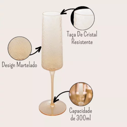 Taça de Champanhe de Cristal Ecológico Martelado Petra Âmbar 300ml – Lyor