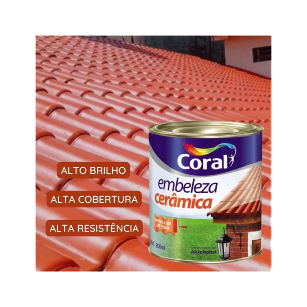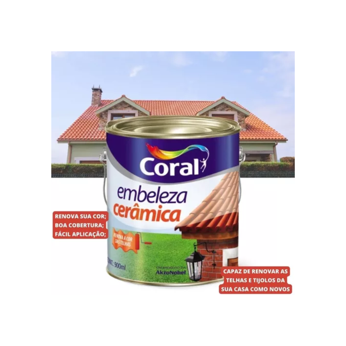 A Tinta Embeleza Cerâmica 900ml Coral é indicado capaz de renovar e deixar as telhas e tijolos de sua casa como novos.